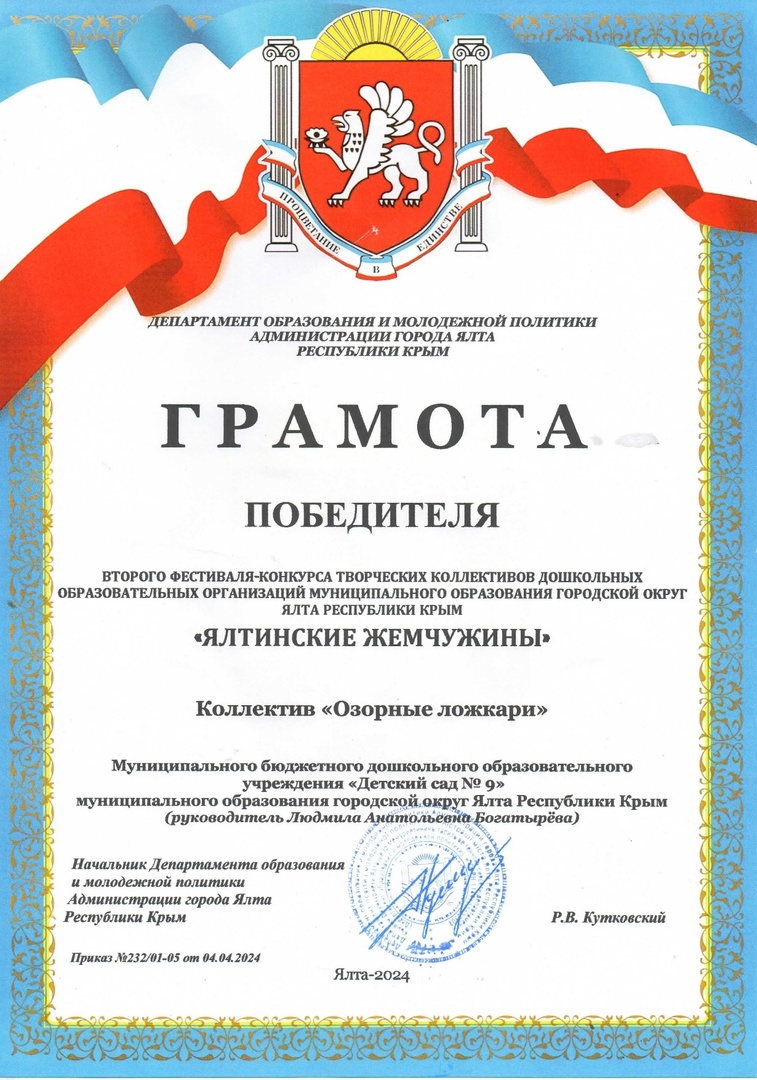 Муниципальное бюджетное дошкольное образовательное учреждение «Детский сад № 9» муниципального округа город-курорт Ялта Республики Крым
